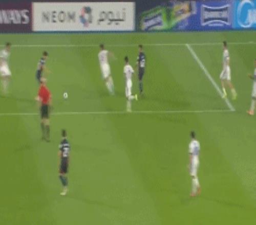 第67分钟,徐皓阳突入禁区之后被因萨绊倒,主裁判先是向徐皓阳出示黄牌。随后,视频助理裁判介入判罚,回看慢镜头之后,主裁判判罚点球,米内罗主罚点球破门,1比2!